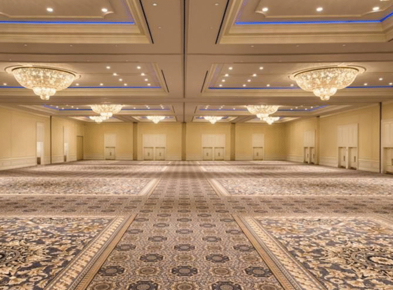 Transform your hotel with our sophisticated broadloom carpets, designed for luxury and resilience in high-traffic areas.